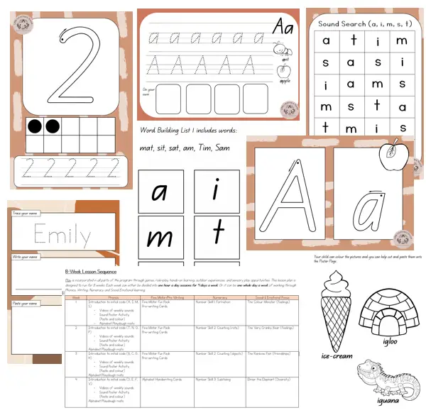 The 8-week School Readiness Program includes everything you need! Lesson intentions, resources, guides and tips are readily downloadable for you to prepare your child as best you can! The program is carefully crafted with play-based age-appropriate pedagogy in mind. Digitally downloadable resources make this program so easy to prepare and use right away with your child.